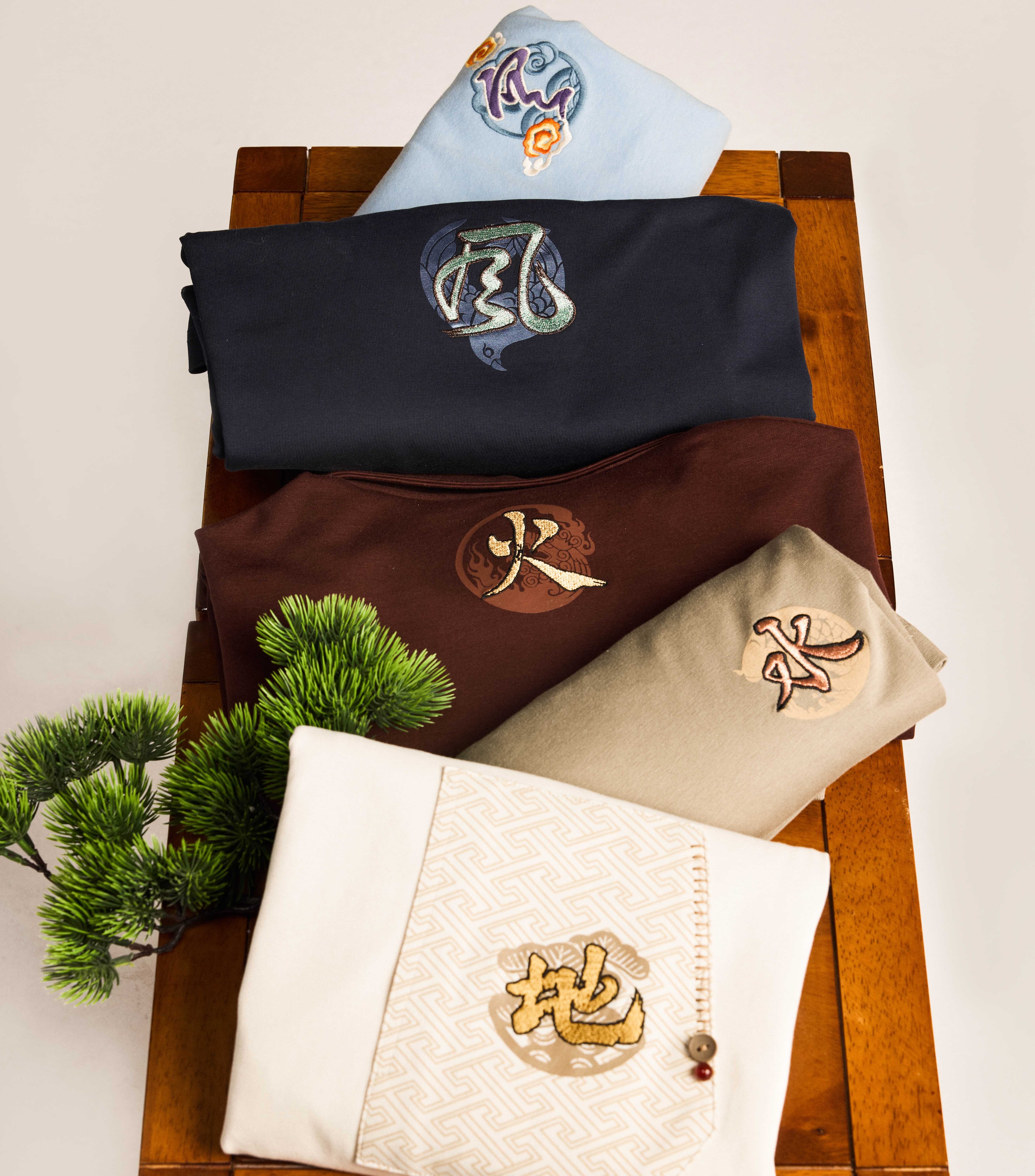 大地・流動・情熱・風韻・静寂のエッセンスを、色・図案・刺繡へと昇華。