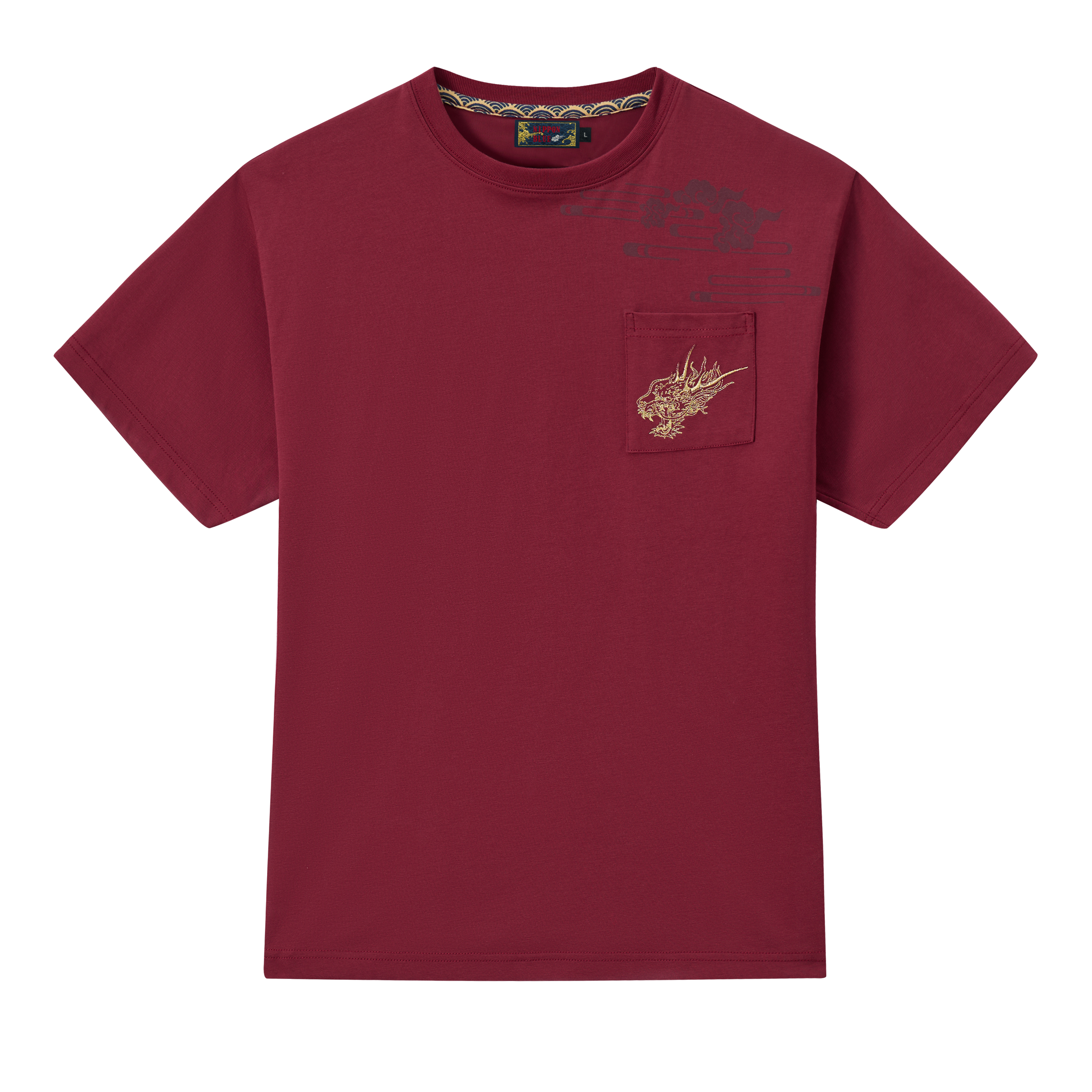 - コットン素材、胸ポケット刺繍、背面刺繍。