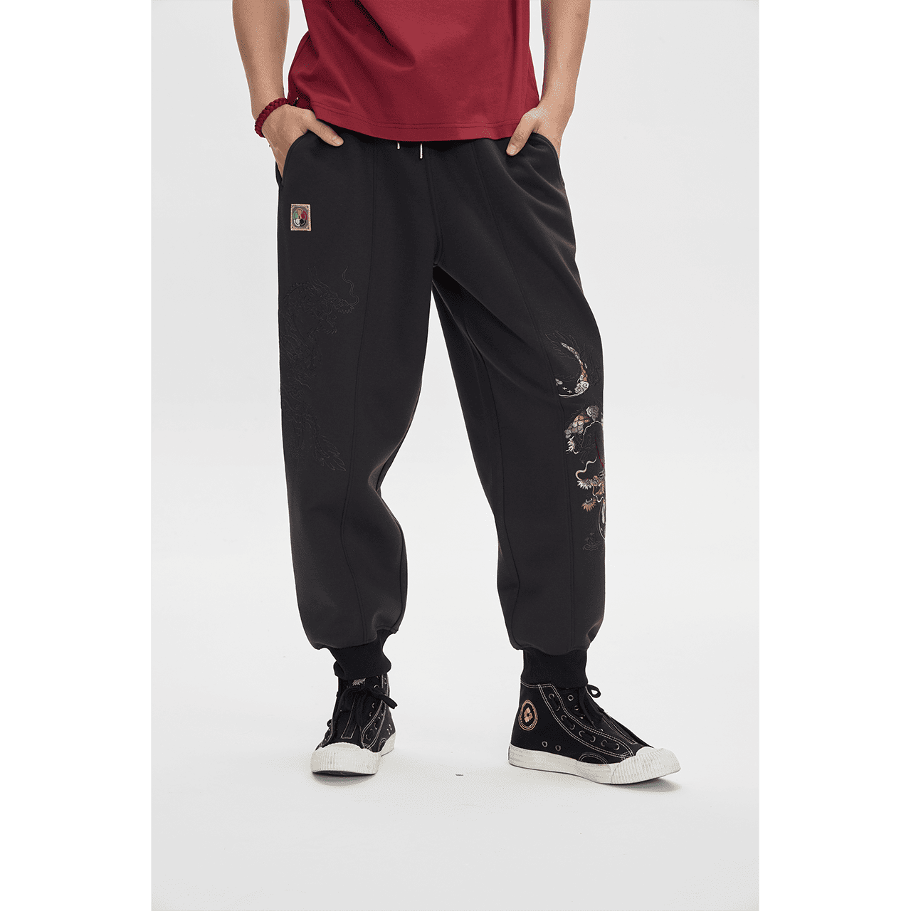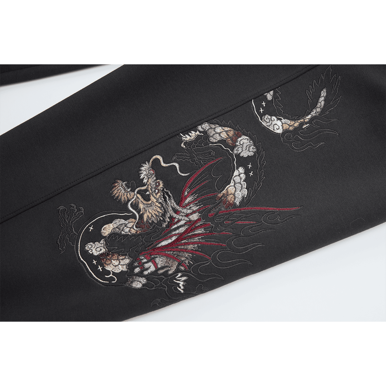 「墨」は集中力と落ち着きを象徴。ビジネス面での成長と安定を願う一本。両サイドの同色龍刺繍は、控えめながら存在感のある仕上がり。