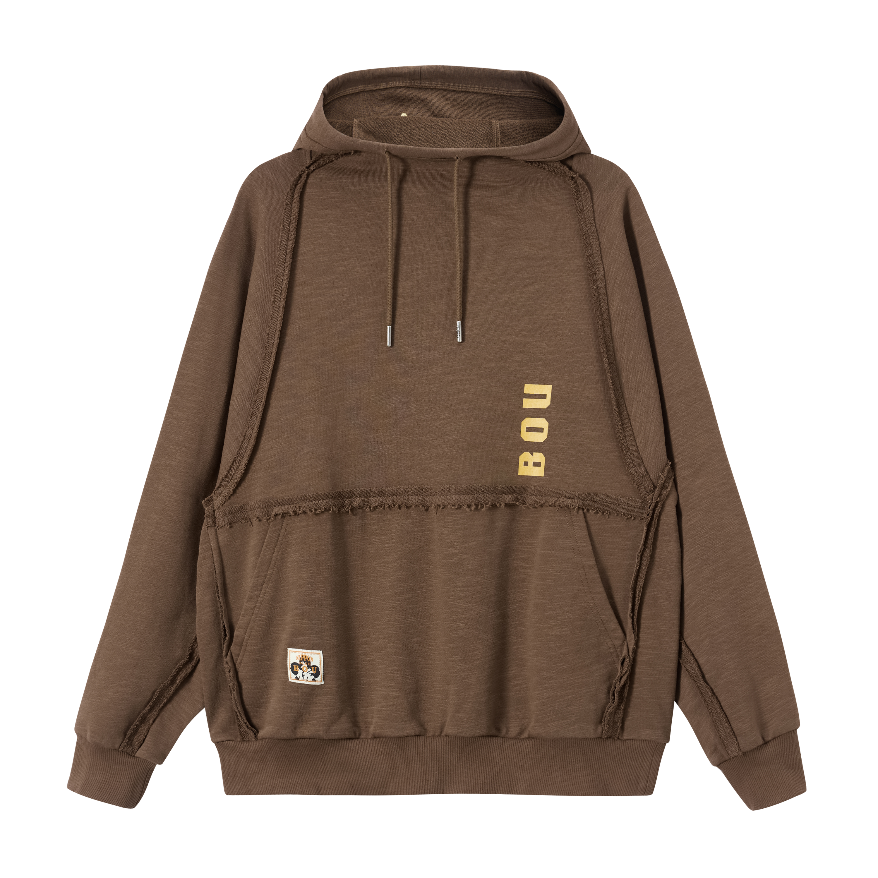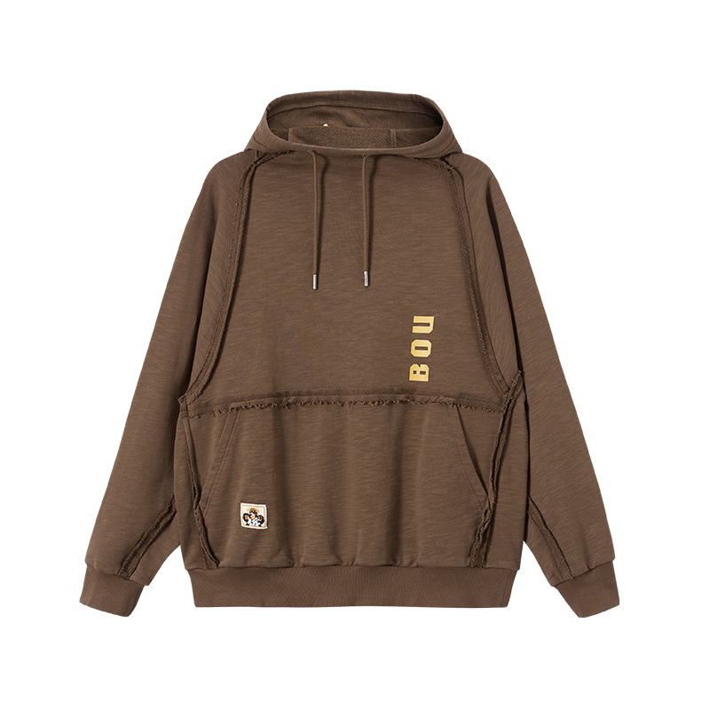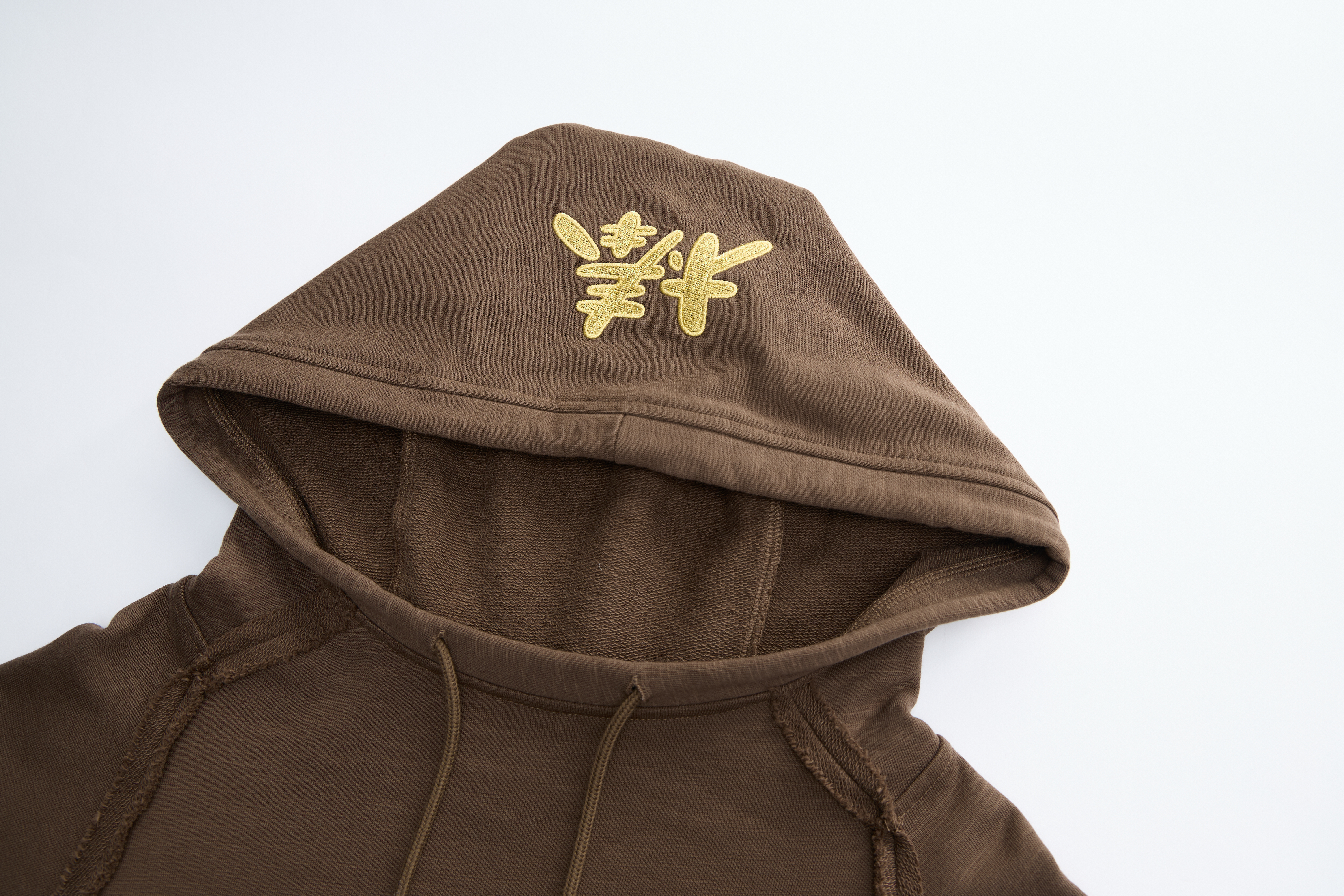 背面に大胆な達磨フェイスを配置した刺繍パーカー。フロッキープリントと刺繍を組み合わせ、奥行きのある仕上がりに。竹節調の風合いある生地とゆったりしたシルエットで、リラックス感のある着心地を楽しめます。