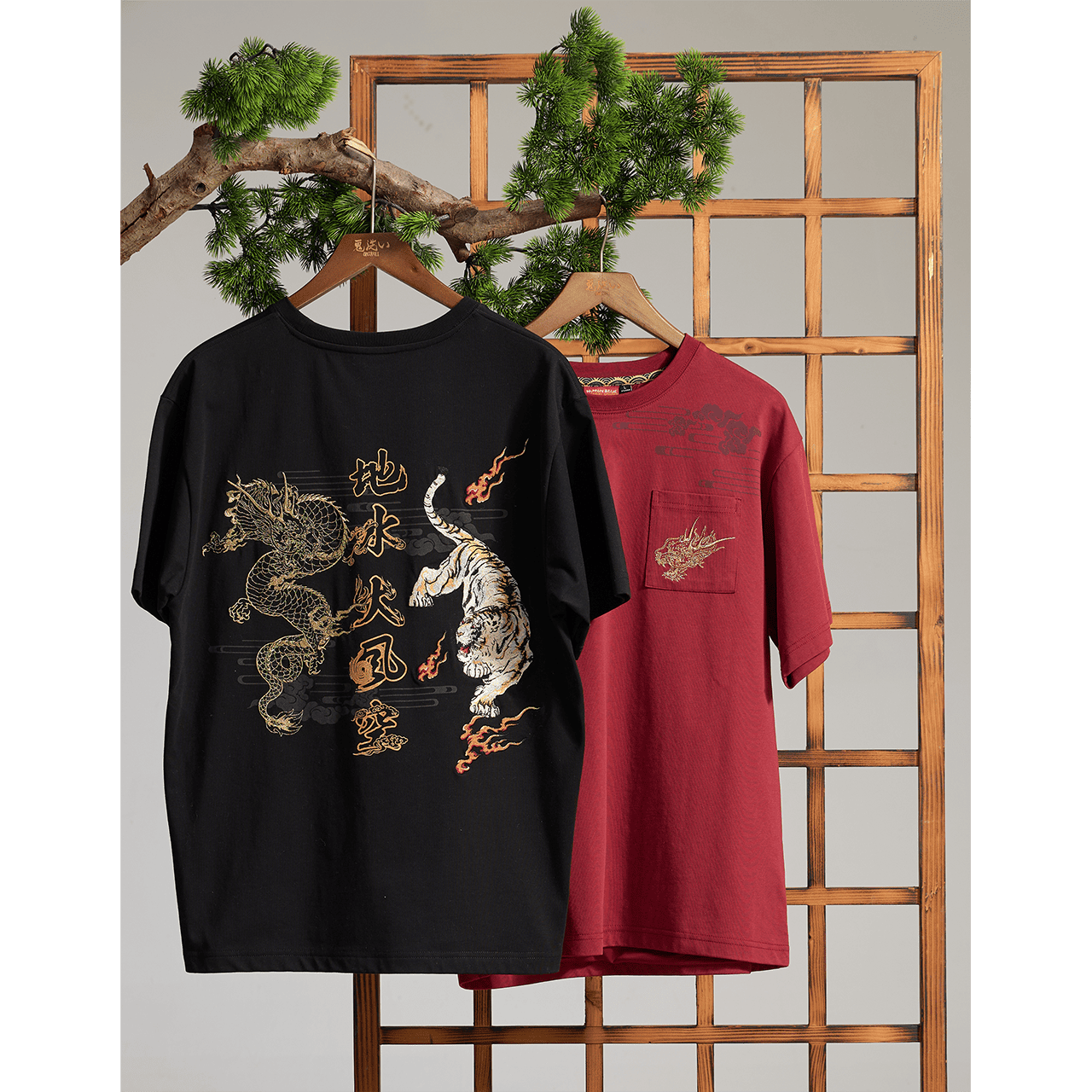 「赤」は情熱・活力・吉兆を象徴。《火の巻》は幸運の訪れを表す一枚。 龍と虎が背面に共存し、力強さと前向きなエネルギーを表現。