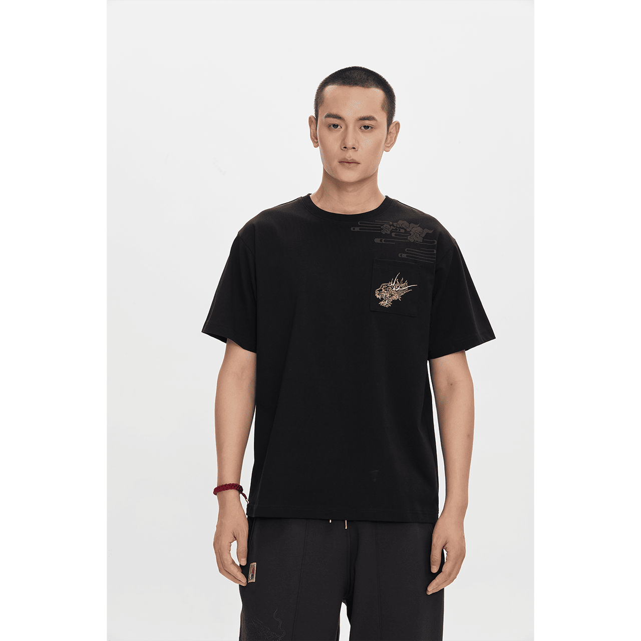 - コットン素材、胸ポケット刺繍、背面刺繍。
