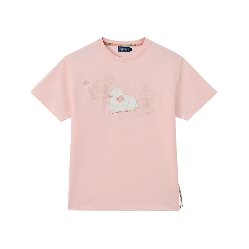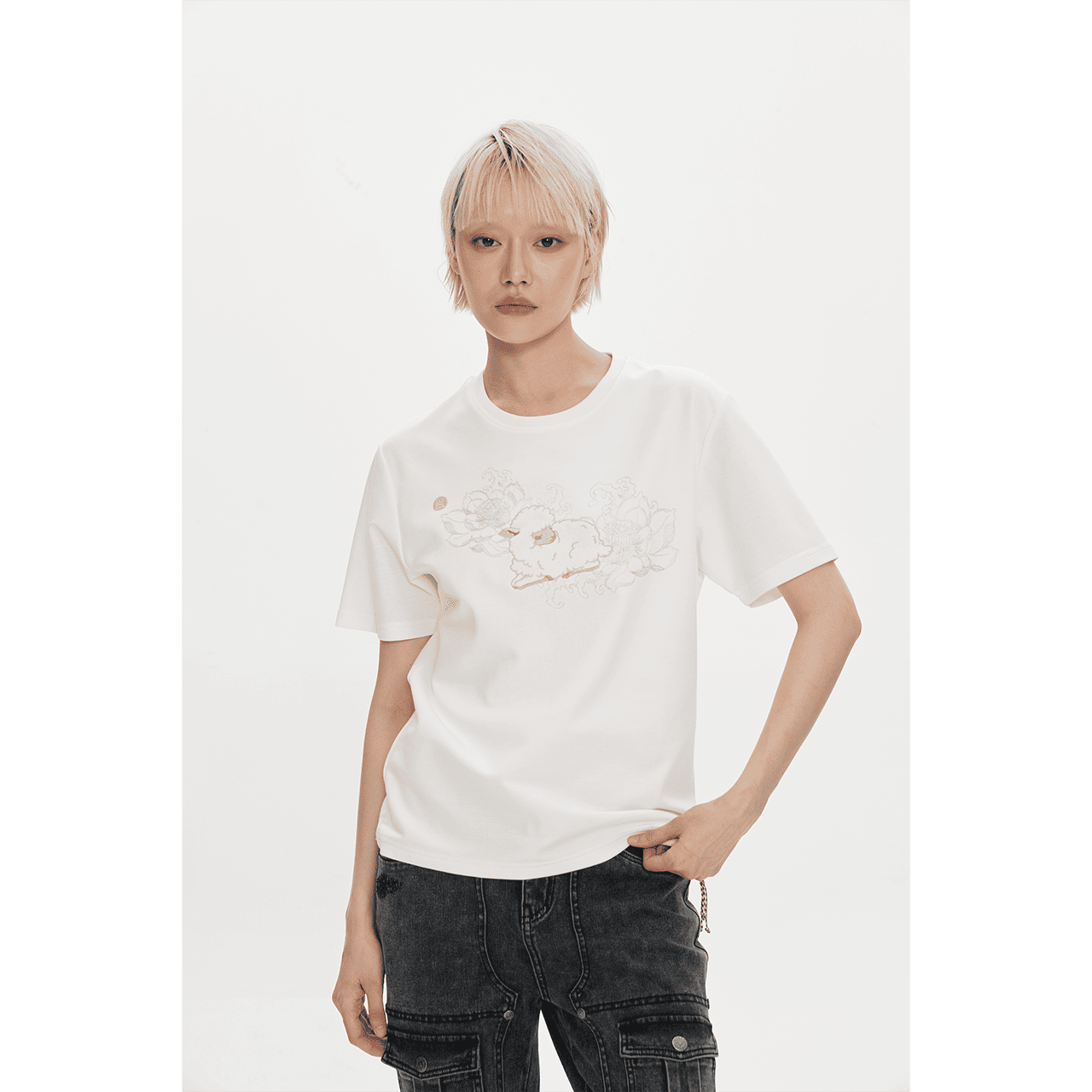 「白」は純潔・希望・良縁を象徴。《空の巻》は恋愛運と対人関係の調和を願う一枚。 蓮の上に横たわる羊が、優しさと幸福を象徴します。