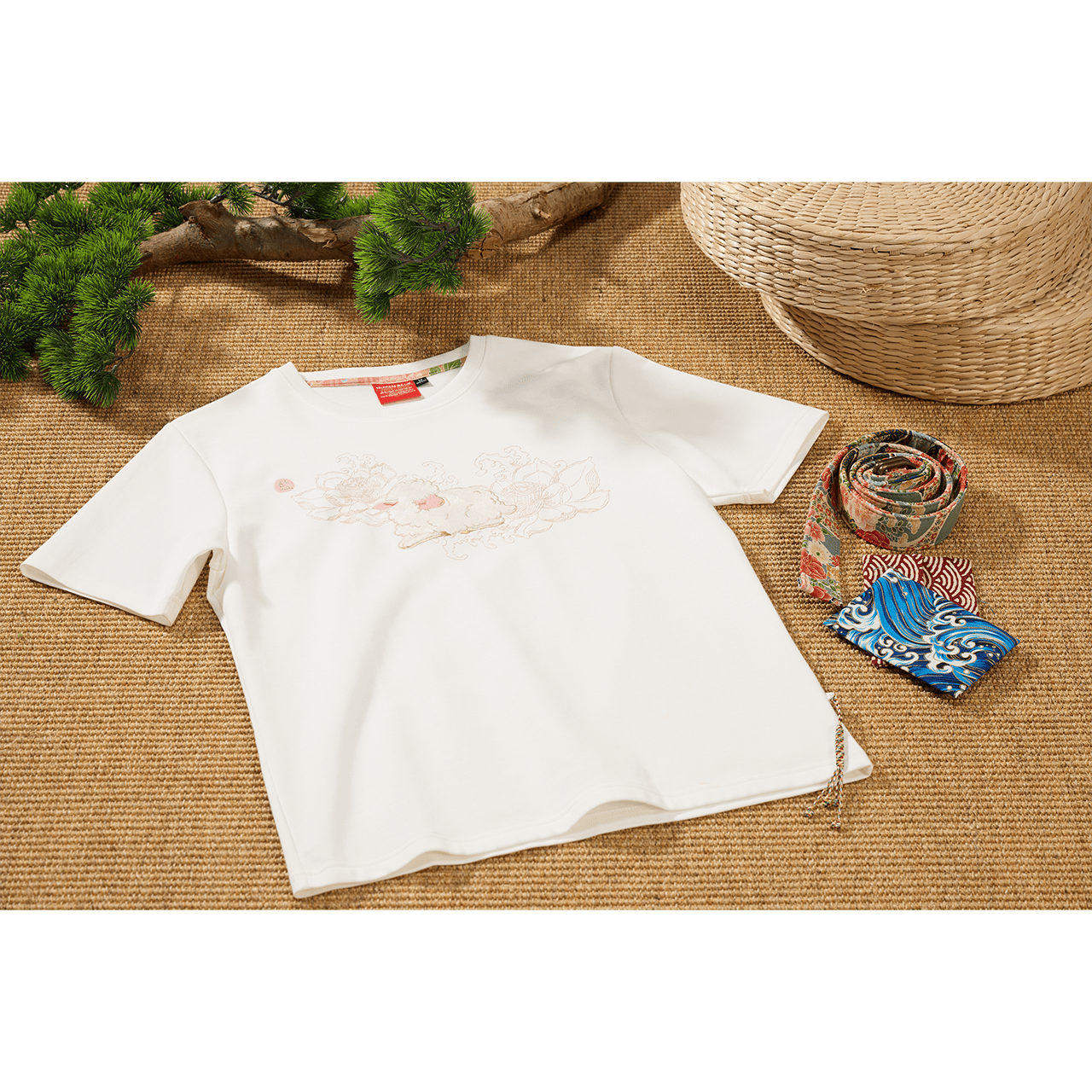 - ソロナ冷感素材、胸元刺繍、五色結び。
